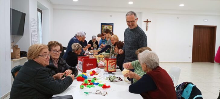 “Dal 2023 – racconta don Paolo – abbiamo avviato una mappatura dei bisogni ascoltando e intervistando gli anziani, potenziando la relazione d’aiuto e di cura, sperimentando attività di aggregazione e socializzazione e rafforzando gli spazi disponibili per loro. Ci siamo occupati di trasporto sociale e sostegno ai soggetti in gravi condizioni economiche, abbiamo realizzato laboratori. Per il Santo Natale i nostri utenti hanno dato sfogo alla creatività realizzando addobbi, decorazioni, fiori di carta, bigliettini da appendere sull’albero, un mercatino e una tombolata; oltre, naturalmente, a momenti di preghiera, pellegrinaggi ed eventi condivisi con tutte le comunità parrocchiali interessate. Abbiamo creato animazione, incontri formativi, sostegno alimentare, avviato lo sportello sanitario e attivata la collaborazione con il Banco Farmaceutico. Abbiamo garantito un supporto per le esigenze della vita quotidiana (compagnia, ritiro della pensione, spesa), e per la gestione del centro sociale per anziani. Ma soprattutto abbiamo coinvolto altre associazioni (clown dottori, centri sociali, IOM, medici di base, La mano tesa e Il talento per diversamente abili), in sinergia con l’Ufficio per la pastorale sociale e quello per la pastorale della salute dell’arcidiocesi di Fermo. Le attività sono continuate per tutto il 2024 anche con i giovani del servizio civile. La collaborazione tra parrocchie è diventata una costante: oggi i pensionati sono gli stessi organizzatori degli eventi e i legami hanno permesso di superare anche l’isolamento geografico”.