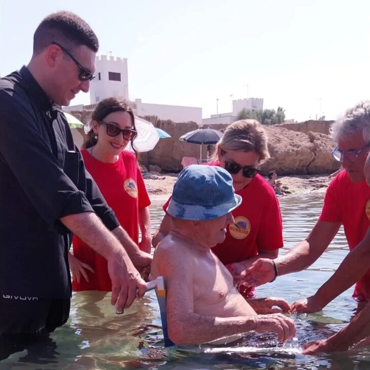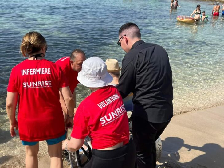 Un ragazzo malato di sla appassionato di apnea è riuscito a osservare di nuovo i fondali, grazie all’aiuto di medici e fisioterapisti. Mentre una signora di Milano spaventata dall’acqua ha fatto il bagno ogni giorno in tranquillità. Merito di Sunrise onlus e della sua iniziativa “Il mare di tutti”, che rende fruibili tre spiagge del Salento ai malati di sla e sclerosi multipla. A San Foca, Mancaversa e Gallipoli, medici, fisioterapisti e volontari garantiscono la possibilità di fare un bagno in mare e rilassarsi in spiaggia a malati e disabili. Con loro, in questa estate 2024, c’era anche don Graziano Greco, parroco a Taviano (LE), che era stato affettuosamente soprannominato “il parroco bagnino”.