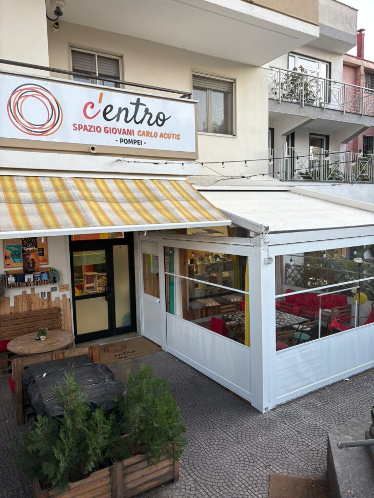 “C’entro” è stato inaugurato quattro anni fa ed è intitolato a Carlo Acutis, interamente ristrutturato dagli studenti universitari su locali del Santuario. “Qui c’erano solo un vecchio divano e due sedie – racconta don Ivan Licinio, 42 anni, responsabile della pastorale giovanile della Prelatura di Pompei -. Abbiamo dato ai giovani la possibilità di farne una seconda casa”. Il colpo d’occhio è suggestivo. I colori, la tinta delle pareti, gli arredi, gli accessori, gli angoli musicali e artistici: tutto scelto dai ragazzi. “Dopo il covid – riprende don Ivan – abbiamo avvertito la necessità, come ogni diocesi, di uno spazio giovanile dove condividere gioie e tristezze dell’esistenza, dallo studio agli affetti, dalle feste alla solidarietà verso i più deboli. I ragazzi hanno deciso la destinazione d’uso e hanno recuperato le aiuole esterne, arricchendole di panchine e di un gazebo. Tanti qui mangiano, utilizzando un piano cottura. Tra una sessione di studio e l’altra, si ritrovano a mangiare insieme studenti degli atenei di Napoli e di Salerno, e poi si aiutano reciprocamente. Dopo le 7 di sera incominciano diverse attività: un corso di chitarra gratuito, tenuto da un cantautore locale, un corso di ricamo creativo per cucire e personalizzare oggetti, un corso di teatro, uno di coro gospel. Alcune iniziative nascono anche su tematiche sociali, come il corso di educazione affettiva con la partecipazione di alcuni psicologi: l’ascolto e la formazione sono prioritari. La nostra pastorale universitaria coinvolge l’Azione Cattolica e gli scout dell’Agesci e tanti dei nostri giovani che non frequentavano la parrocchia si riavvicinano alla fede proprio in questo centro, dove possono confrontarsi con altri coetanei e condividere un percorso. Per la Canonizzazione di Bartolo Longo da qui sono arrivati a Roma, in treno, 1200 pellegrini e la logistica è stata affidata proprio agli studenti universitari del nostro centro, in sinergia con l’Azione Cattolica e l’Agesci di Pompei”.