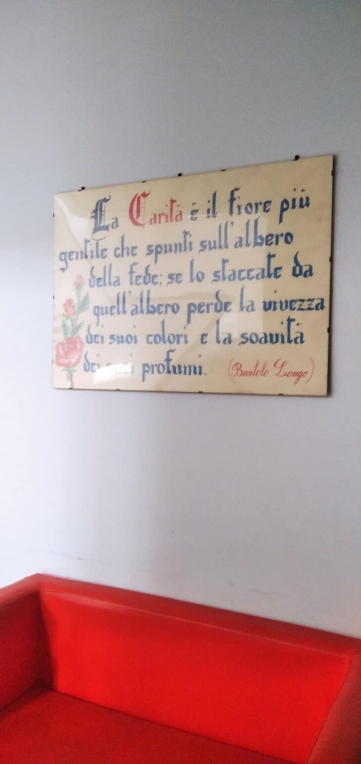 “La nostra Caritas – riprende don Antonio – lavora in rete e spesso sostiene i paesi limitrofi, che ricadono nel territorio della diocesi di Nola: aiutiamo italiani separati, ragazze madri, donne che hanno subìto violenza, anziani soli, migranti. Il nostro Santuario, che sorge tra le case in pieno centro, appartiene a tutti: il Rosario è l’identikit di questa Chiesa, la presenza di Maria si percepisce ovunque e accompagna il nostro quotidiano. Le offerte dei benefattori del Santuario sparsi nel mondo ci consentono di mandare avanti tutte queste realtà, cui si aggiungono associazioni laiche ed ecclesiali, commercianti e agricoltori, che formano un oceano di bene, e garantiscono la costosa manutenzione  degli edifici”.