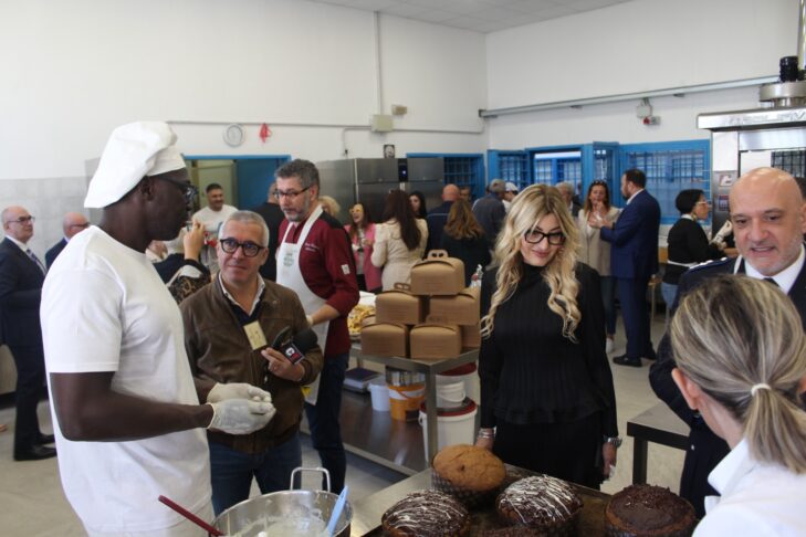 “Abbiamo iniziato nel 2019 con una piccola pasticceria per la prima colazione: quindi i cornetti, i bocconotti e le crostate. Il progetto prevedeva la presenza di un pasticcere, un professionista che logicamente abbiamo fatto entrare nella struttura carceraria; un pasticcere esperto che, nonostante l’età, continuava a lavorare nelle pasticcerie, qui a Taranto, e che si è messo a disposizione per trasmettere le sue competenze e i piccoli trucchi del mestiere. Con lui abbiamo portato avanti il laboratorio sia all’interno che all’esterno del carcere negli anni 2018 e 2019. Abbiamo capito dall’inizio che la cosa riscuoteva molto interesse!