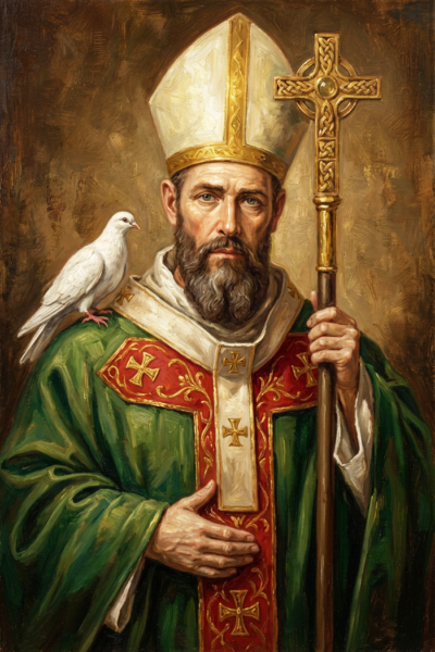 Seppur non si conoscano dati precisi e documentati sulla sua vita, Davide, patrono del Galles, è uno dei santi britannici più popolari. La sua esistenza è avvolta da leggende e tradizioni, spesso legate a episodi prodigiosi che ne segnarono l’infanzia. Si racconta, infatti, che la sua nascita fu miracolosa: venne al mondo su una scogliera durante una violenta tempesta, nato dal grembo di una suora in circostanze eccezionali. Davide visse nel VI secolo e, secondo un manoscritto del X secolo degli Annales Cambriae, morì nel 601. Sebbene si trovino sue notizie in documenti degli VIII-X secoli, una biografia completa fu redatta solo nell’XI secolo da Rhygyfarch. Secondo questa fonte, Davide era figlio di Sante Nonna e nacque nella Valle di Rohs. Fu educato e istruito da Sant’Iltut e da Paolino; ordinato sacerdote, trascorse dieci anni in un’isola solitaria dedicandosi alla penitenza e allo studio delle Scritture. In seguito, scelse la vita monastica e iniziò a evangelizzare la Britannia, allora abitata da popolazioni celtiche. Fondò dodici monasteri, dove promuoveva una vita comunitaria austera, tra lavoro, studio e preghiera. Tornato in patria, succedette a Dubricio come vescovo di Caerlon e in seguito assunse la sede di Menevia. Il suo sepolcro divenne presto meta di pellegrinaggi e molte chiese nel Galles, in Irlanda e in Inghilterra furono dedicate alla sua memoria. Nel 966 le sue reliquie furono traslate a Glastonbury, ma il Galles rivendicò sempre la custodia principale presso la Cattedrale di St. David’s. Le sue ultime parole ai seguaci prima di morire furono: «Siate felici, conservate la fede e fate cose semplici».