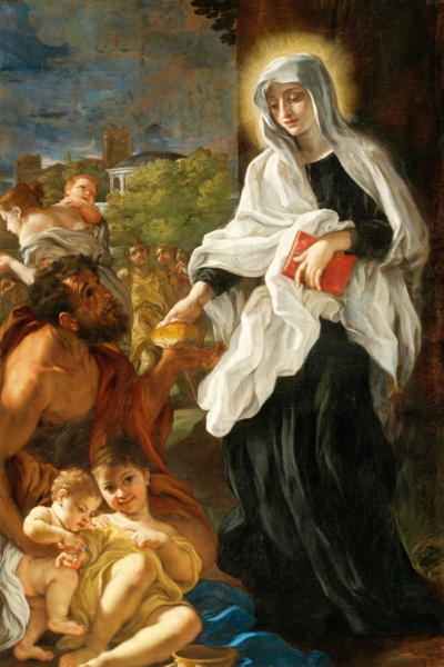 Religiosa, che, sposata in giovane età e vissuta per quarant’anni nel matrimonio, fu moglie e madre di specchiata virtù, ammirevole per pietà, umiltà e pazienza. In tempi di difficoltà, distribuì i suoi beni ai poveri, servì i malati e, alla morte del marito, si ritirò tra le oblate che ella stessa aveva riunito a Roma sotto la regola di San Benedetto.